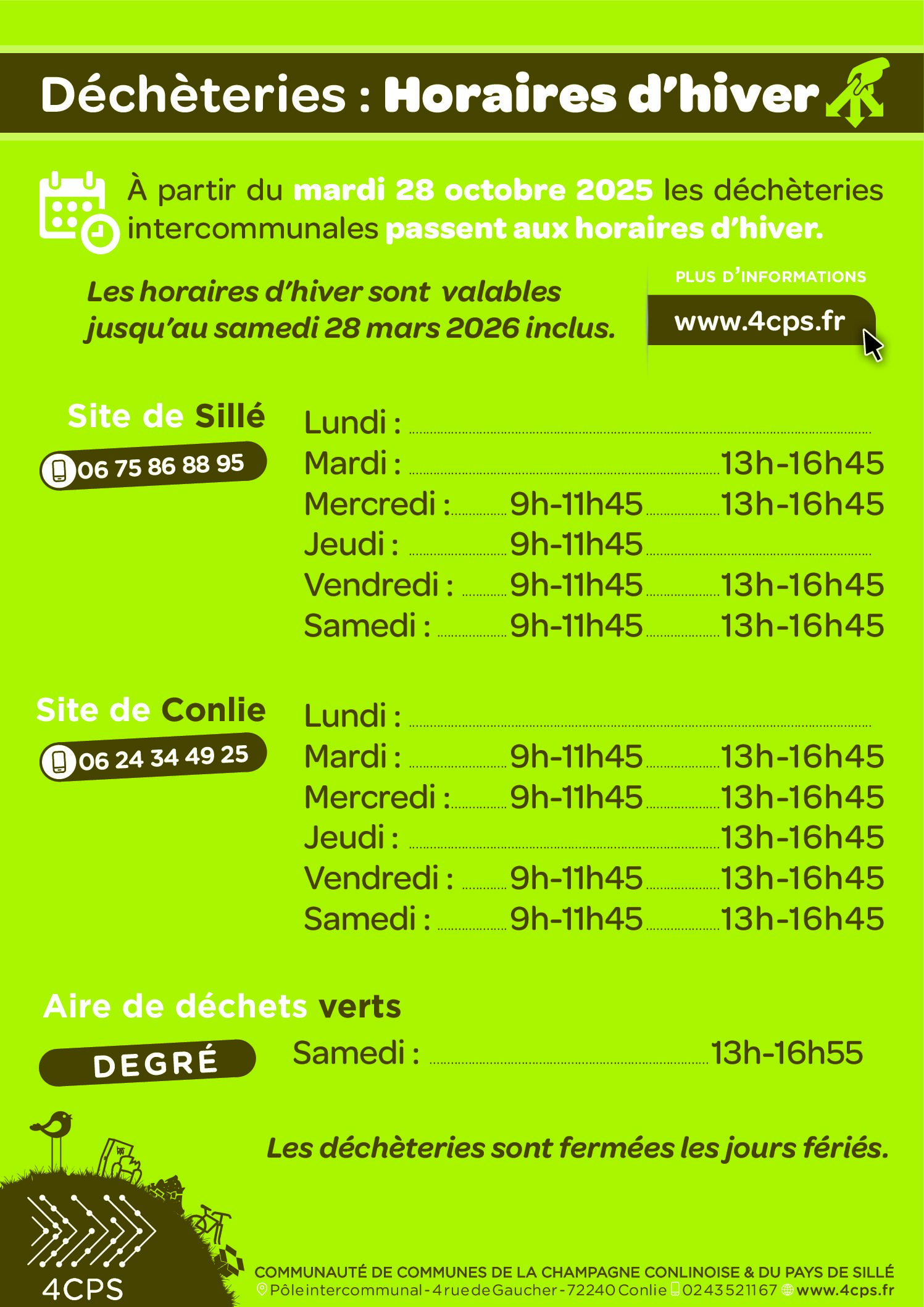 Horaires d'hiver déchèteries intercommunales